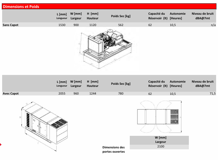 Certifié ISO 8528, silencieux à 71,5 dBA et garanti 2 ans / 1000 heures, il constitue une solution robuste, durable et hautement performante.