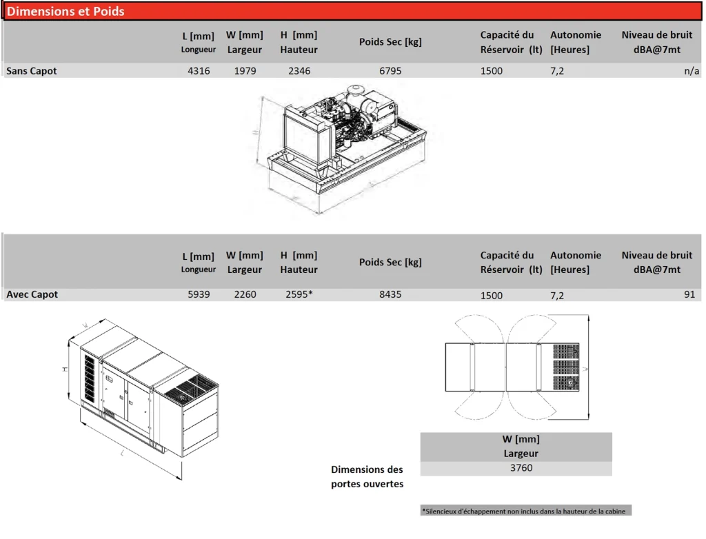 Le groupe électrogène diesel ARK-B 1125 L5, produit par Arken Power Solutions, délivre 1020 kVA en puissance prime et 1125 kVA en puissance de secours, grâce au moteur Baudouin 12M26G1100/5 à 12 cylindres, turbocompressé et refroidi par eau, associé à l’alternateur LINZ PRO40S B/4. Offrant un rendement de 96,6 %, une régulation de tension de ±1 % et un THD < 3 %, il garantit une alimentation électrique propre et stable, même sous fortes charges. Construit conformément aux normes ISO 8528 et ISO 3046, ce groupe électrogène fonctionne à 89,1 dBA, alliant un faible niveau sonore à une durabilité exceptionnelle. Soutenu par une garantie de 2 ans ou 1000 heures, le ARK-B 1125 L5 s’impose comme une solution énergétique puissante et fiable pour les environnements industriels à forte demande.