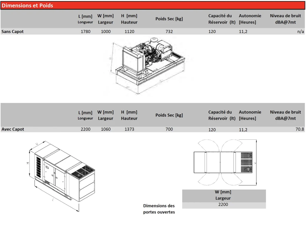 Le groupe électrogène diesel ARK-B 55 L5, conçu par Arken Power Solutions, délivre 48 kVA en puissance prime et 52 kVA en puissance de secours, offrant une énergie efficace et durable pour les opérations industrielles et commerciales. Équipé d’un moteur Baudouin 4M06G50/5 à 4 cylindres, turbocompressé et refroidi par air de suralimentation, il garantit une excellente économie de carburant et une fiabilité exceptionnelle. Son alternateur LINZ, doté d’un régulateur de tension électronique AVR, maintient une tension précise avec un THD inférieur à 3 %, assurant une alimentation électrique propre. Construit conformément aux normes ISO 8528 et ISO 3046, le ARK-B 55 L5 fonctionne à 70,8 dBA, dispose d’un capot résistant à la corrosion et bénéficie d’une garantie de 2 ans ou 1000 heures, ce qui en fait une solution énergétique fiable et durable.