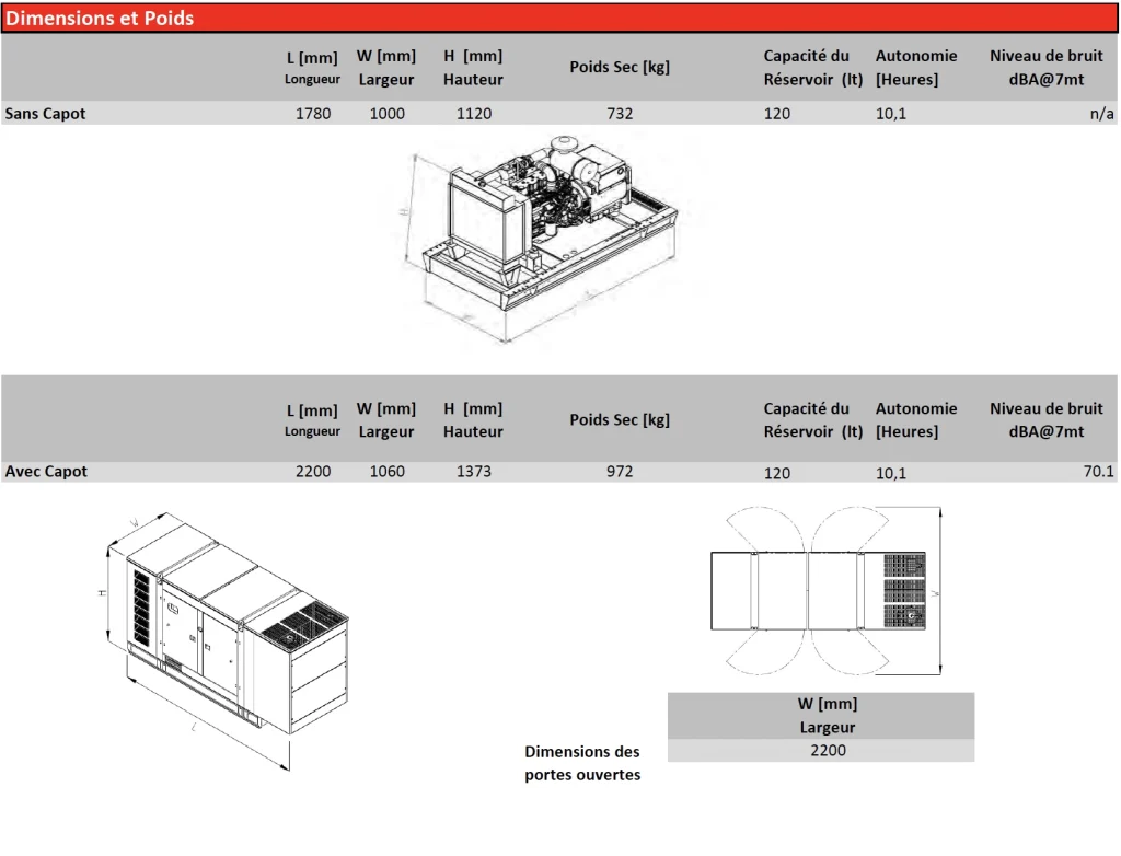 Le groupe électrogène diesel ARK-B 60 L5, produit par Arken Power Solutions, fournit 52 kVA en puissance prime et 58 kVA en puissance de secours, assurant une énergie stable et efficace. Entraîné par un moteur Baudouin 4M06G55/5 à 4 cylindres, turbocompressé, refroidi par air de suralimentation et doté d’un contrôle ECU, il garantit d’excellentes performances énergétiques, de faibles émissions et une longue durée de vie opérationnelle. Son alternateur LINZ, équipé d’un régulateur de tension électronique AVR, assure un contrôle précis de la tension et un THD inférieur à 3 %, pour une alimentation propre et ininterrompue. Conforme aux normes ISO 8528 et ISO 3046, le ARK-B 60 L5 fonctionne silencieusement à 70,1 dBA, dispose d’un capot robuste et bénéficie d’une garantie de 2 ans ou 1000 heures, offrant une puissance fiable dans toutes les conditions.