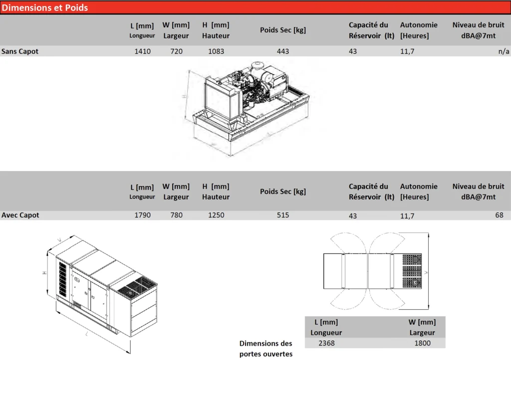 Conforme aux normes ISO 8528, silencieux à 68 dBA et garanti 1 an / 1000 heures, il constitue une solution durable et performante pour une alimentation continue ou de secours.