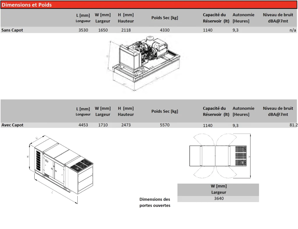 Conforme aux normes ISO 8528, silencieux à 81,2 dBA et garanti 1 an / 1000 heures, il constitue une solution robuste, durable et efficace pour une production d’énergie continue ou de secours.