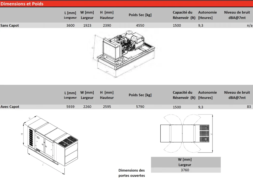 Avec 770 kVA prime et 840 kVA standby, son moteur Perkins 2806A-E18TTAG5 et son alternateur NEKRA ARK 6C, il fournit une énergie propre, stable et performante pour les applications industrielles et commerciales intensives.