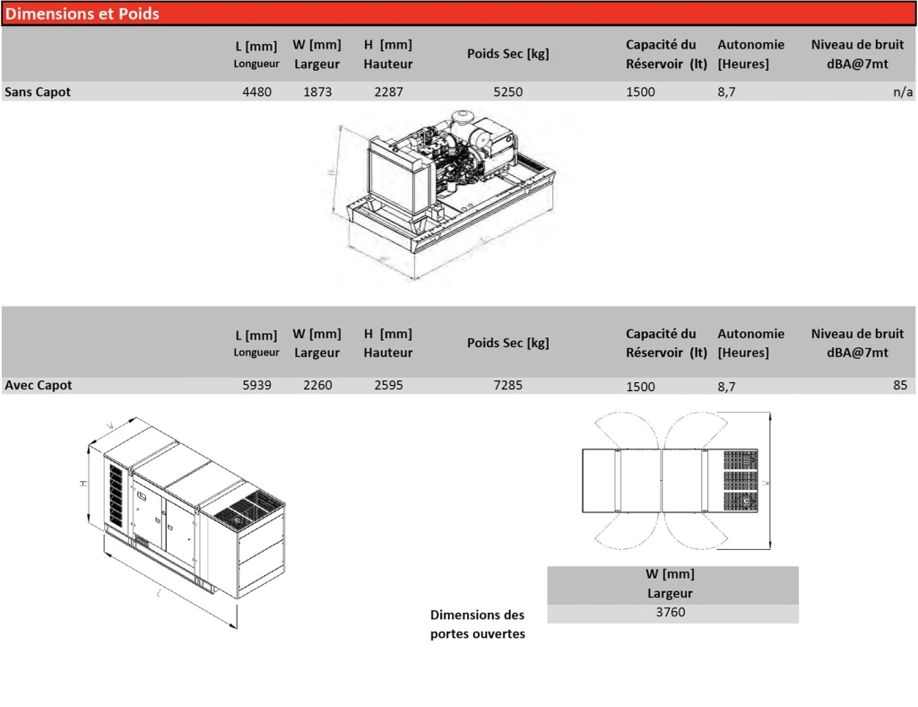 Conforme aux normes ISO 8528, fonctionnant à 85 dBA et garanti 1 an / 1000 heures, il constitue une solution robuste, fiable et efficace pour une production d’énergie continue ou de secours.