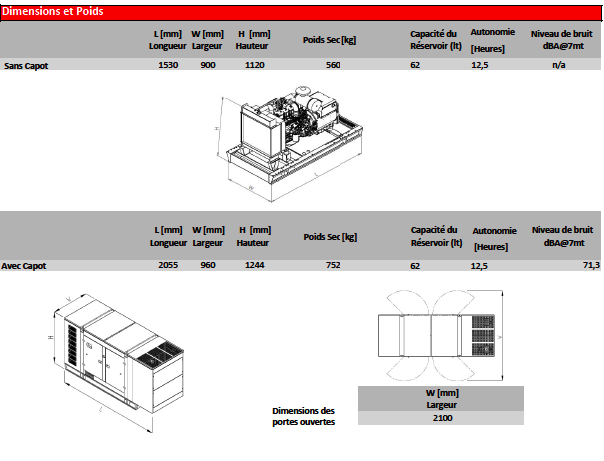 Puissance Standby (kVA / kW)