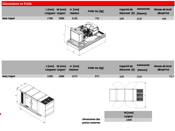 Certifié ISO 8528, avec un niveau sonore de 71,7 dBA et une garantie 2 ans / 1000 heures, il garantit une alimentation fiable et durable pour les usages intensifs.