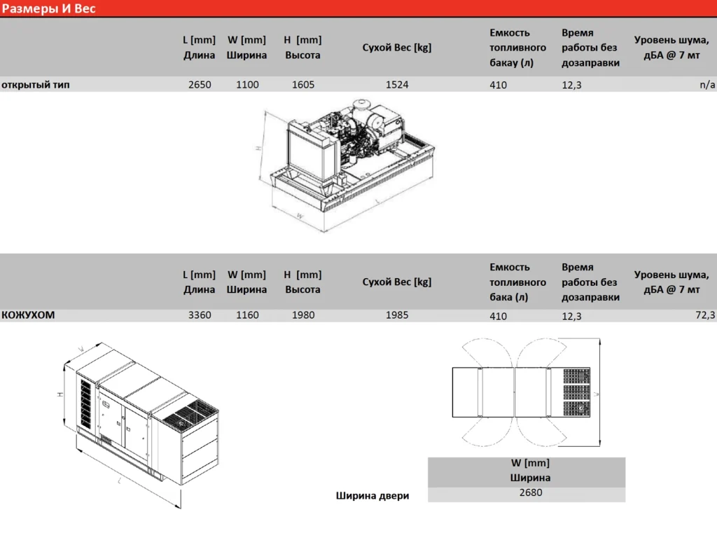 Соответствует стандартам ISO 8528 / ISO 3046, уровень шума 72,3 дБА, гарантия 2 года / 1000 часов.